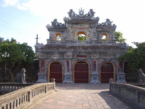 Am: You are welcomed at Phu Bai airport by our guide and driver with welcome sign in hand in the morning flight. You are transferred downtown to hotel in city centre, check in hotel. Take a short break. This morning you will make a boat trip on special boat of Hue people called Dragon boat - the famous boat of local people for visiting the ancientest pagoda of Viet Nam is Thien Mu where is famous for its legend. Along the river you can see the wonderful view with green trees in two sides banks and pure blue water which nowhere has. Next you start to make a city trip around Hue for visiting the Citadel with the Forbidden Purple City where Nguyen Kings reign. You can have chance to learn about the history as well as architecture of Nguyen's Reign Palace include Flag Tower, Noon Gate & Phoenix Tower, Thai Hoa Palace, Nine Urn Dynastys... Have lunch at a restaurant afterward to enjoy Hue traditional foods.